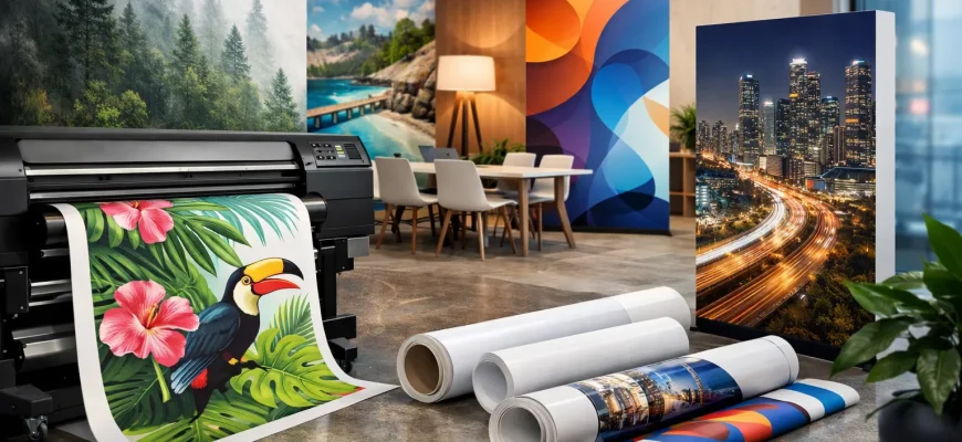 | Бумага | от 400 руб/м² | 1–2 года | Постеры, интерьерный декор |