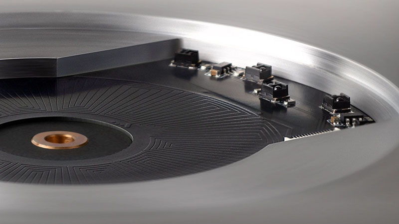 Ключевая особенность Wheel 3 — его оптическая система считывания. В отличие от традиционных проигрывателей, где алмазная игла следует изгибам звуковой дорожки и преобразует колебания в электрические сигналы с помощью электромагнитов и магнитных полей, Miniot использует свет для высокоточного определения положения иглы. Такой подход минимизирует электромагнитные помехи и искажения, обеспечивая более чистое и точное воспроизведение звука, начиная с частоты 0 Гц. Дополняет систему специально разработанный двигатель с прямым приводом, использующий 24 неодимовых магнита и оптическую регулировку скорости. Это решение также обеспечивает стабильное вращение пластинки и устраняет недостатки, характерные для традиционных систем с прямым приводом.